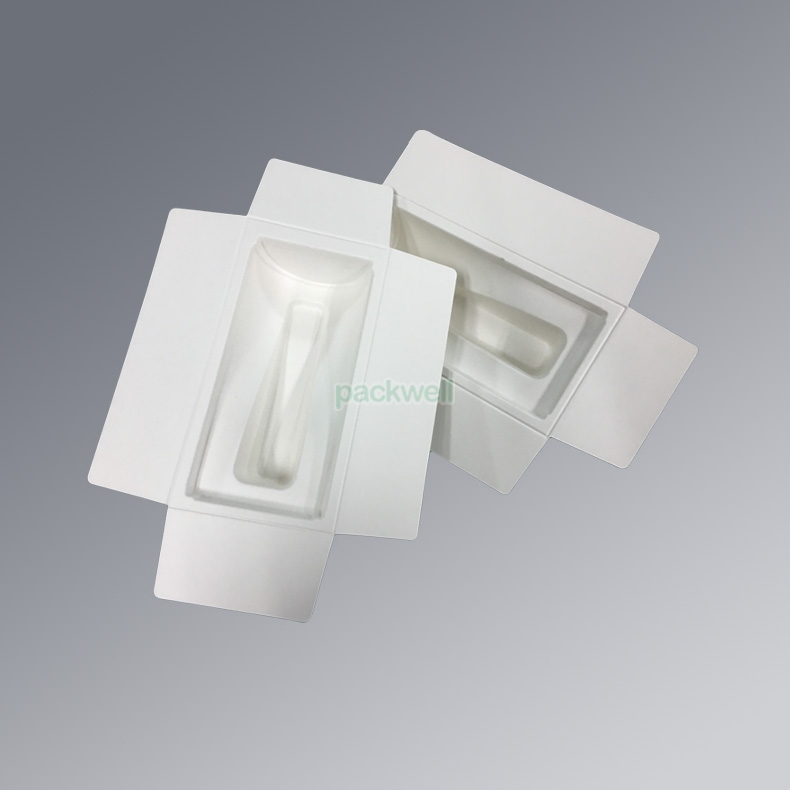 Custom wet press molded pulp inserts and box are ideal for packaging lightweight products like cosmetics, gift packaging, food, electronics, wine and toys products. Popular for ensuring products are held in place to withstand movement, wet press molded pulp inserts are incredibly lightweight and are custom formed to your products to ensure a tight fit within almost any packaging type. The surface features a glossy surface finish adding a higher perceived value to the unboxing experience for your customers.