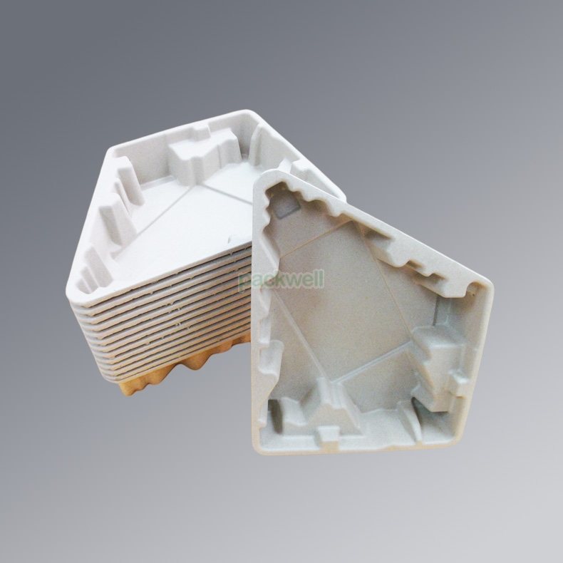 它以各种纸浆为原料,经过碎浆并调配成一定浓度的浆料,在特制的模具和专用设备上经真空吸附成型,再经过干燥而成不同种类和用途的内衬体包装制品。